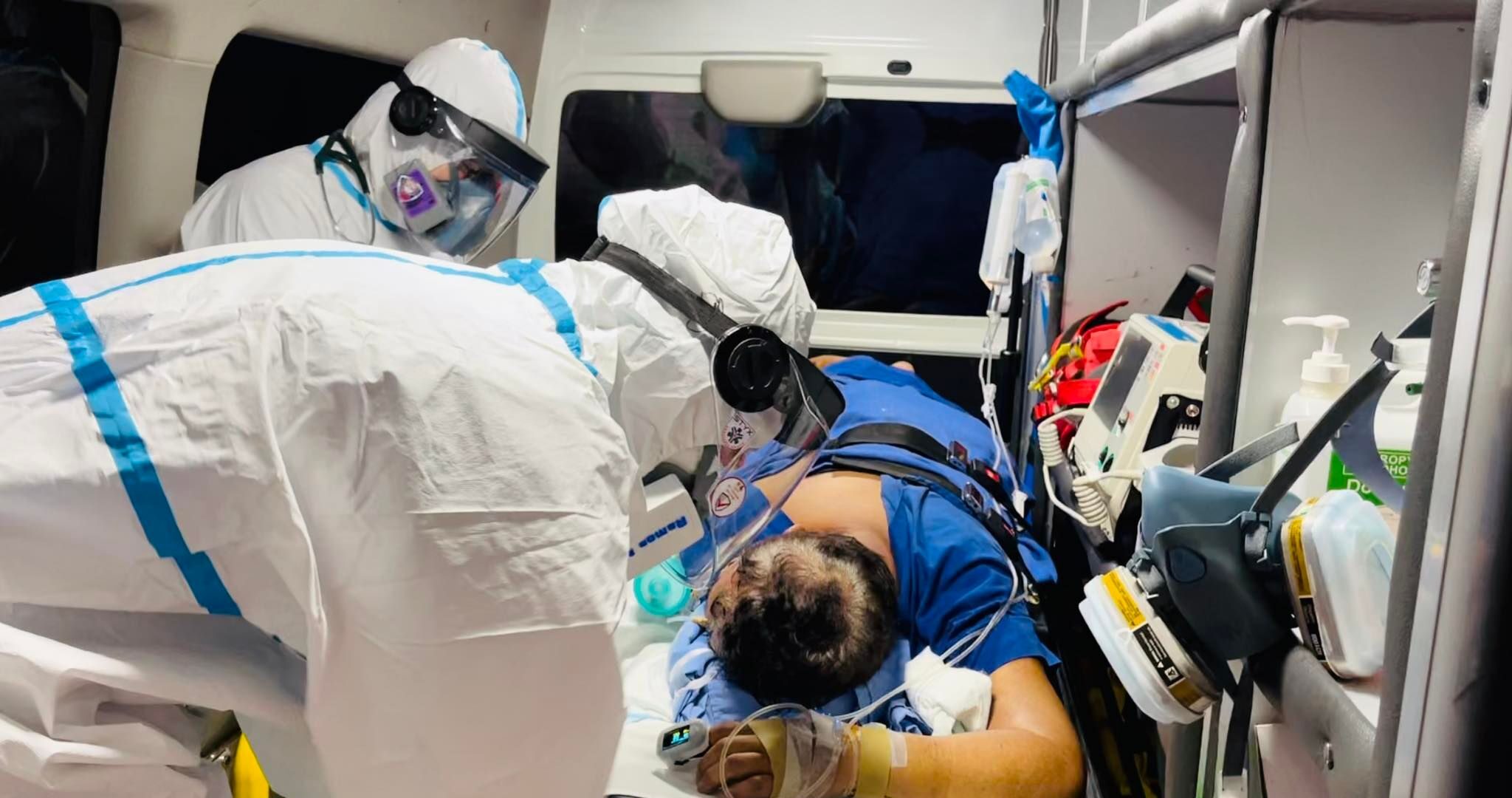 Critical Care Interfacility Transfer from Global Medical Center of Laguna, Case of Acute Respiratory Failure Sec to COVID Pneumonia, Intubated Patient on Prone Position, GCS3, hooked on Portable Ventilator, Cardiac Monitor and Infusion Pump; Successfully transferred and endorsed to Qualimed Hospital Sta. Rosa Laguna.